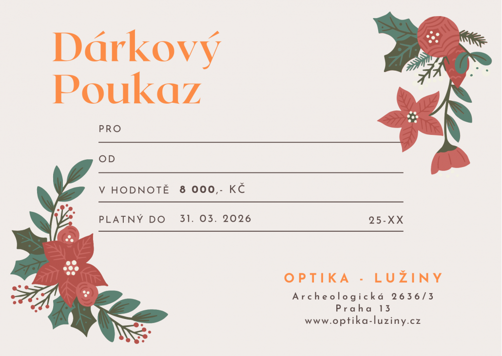 Dárkové poukázky jsou skvělý způsob, jak elegantně obdarovat dámu i pána každé věkové kategorie. Do dvou dnů jsme schopni vytvořit poukázku dle Vaší představy o barvách, textu i částce. Platnost poukazu je standardně 2 měsíce a jeho objednání můžete zadat osobně, telefonicky, či přes email.